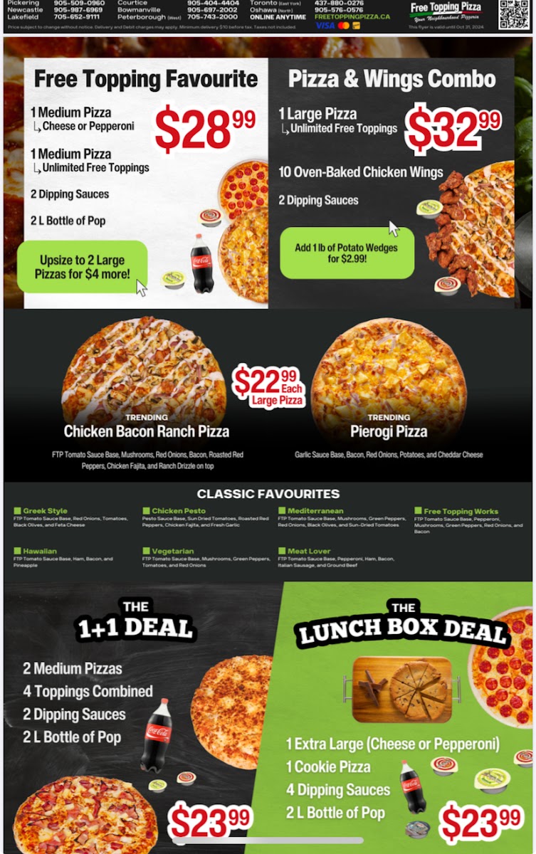 Welcome to Free Topping Pizza Pickering, a hidden gem nestled in the heart of Pickering, Ontario. Located at 376 Kingston Rd, this pizzeria has quickly established itself as a local favorite, thanks to its fresh ingredients and exceptional service. With a menu featuring a wide variety of pizzas and delectable lasagna, Free Topping Pizza promises to satisfy even the most discerning pizza lovers.